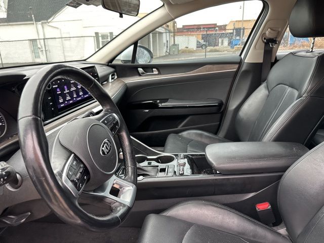 This 2021 Kia K5 EX is a sleek, modern sedan that delivers comfort, technology, and eye-catching style! Powered by a responsive turbocharged engine, it offers a smooth ride along with premium features like leather seating, heated and ventilated front seats, panoramic sunroof, large touchscreen with Apple CarPlay & Android Auto, navigation, blind-spot monitoring, and advanced safety tech. Spacious, fuel-efficient, and loaded with upgrades, this K5 EX is the perfect mix of performance and practicality. Ready to impress dont miss it!