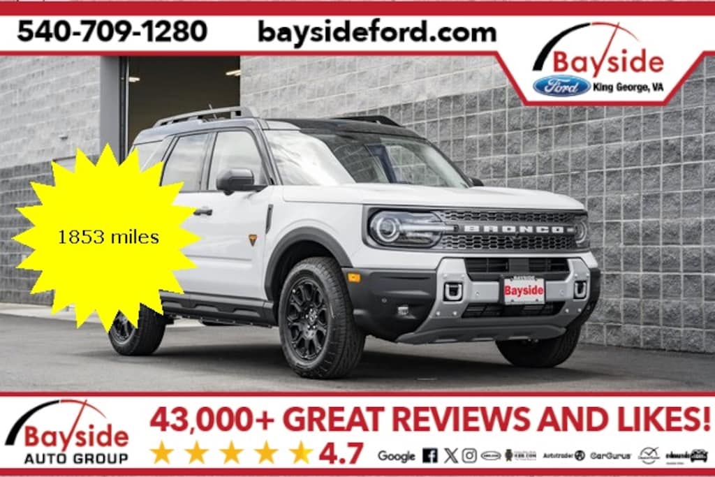 Call/Text us @ 804-986-4206 to schedule your appointment or visit us at 17020 Consumer Row, King George, VA 22485 Our promise - Simple. Honest. Fair. On all vehicles we offer the Bayside VIP BAYSIDE MAINTENANCE, which includes service coupons, multi point inspections, complimentary diagnosis, engine loyalty for qualifying vehicles, a 10 day exchange policy, & a 3 month/3,000 mile powertrain warranty from the time of purchase for peace of mind. This entry level package provides a ton of value and shows our commitment to our customers and community. Bayside Ford in King George, VA, is proud to serve Fredericksburg, Stafford, Spotsylvania, Tappahannock, Bowling Green, Dahlgren, and Colonial Beach communities as the leading dealership for customers looking for a new or pre-owned Fords as well as used vehicles. Every day our attentive sales representatives, financial experts, and our certified technicians work toward the same goal - to provide you with the best customer service experience and make sure you are 100% satisfied with your experience at our dealership.Internet price includes: $1750 Bayside Ford finance incentive and $1500 trade in assistance for retail trades. Price includes: $1000 - Retail Bonus Cash. Exp. 09/30/2025 $750 - Bonus Cash. Exp. 09/30/2025