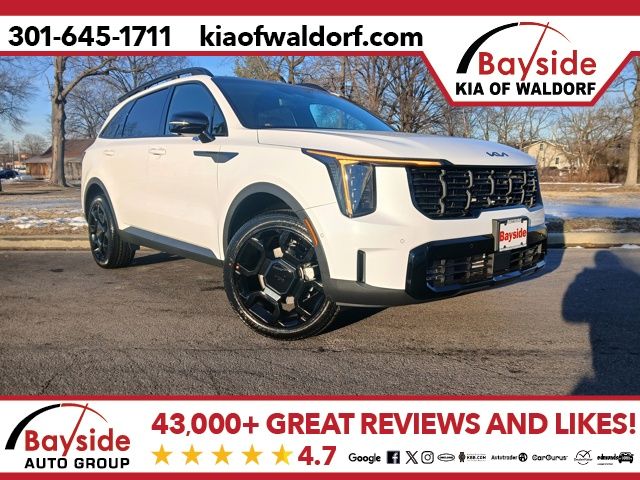 New Price! Glacial White Pearl 2026 Kia Sorento X-Line SX Prestige AWD 8 Speed Dual Clutch 2.5L I4 DGI Turbocharged DOHC 16V LEV3-SULEV30 281hp