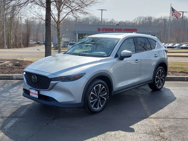 Experience the perfect blend of sophisticated craftsmanship and everyday practicality with this stunning, one-owner 2023 Mazda CX-5 2.5 S Premium Package. Designed to elevate your daily commute while comfortably accommodating the whole family, this SUV stands out with its elegant 19-inch silver alloy wheels, power sliding-glass moonroof, and a refined leather-trimmed interior that rivals luxury European brands. Beneath its sleek exterior lies Mazdaâs renowned i-Activ AWD® system and a fuel-efficient yet responsive powertrain, providing the unwavering reliability and safety you need for school runs and weekend getaways alike. With a clean CarFax, modern tech like a 10.25-inch full-color display, and premium features including a power liftgate and Adaptive Front-lighting, this CX-5 offers a near-luxury experience and peace of mind without the premium price tag.